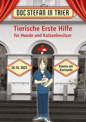 Dann hab ich die Praxistür geschlossen. DocStefan stellt sein neues Programm vor. Nach der „Tierischen Erste Hilfe für Hunde- und Katzenbesitzer, seinem Auftakt auf der Bühne, folgt nun unter dem Motto: Anekdoten, Tipps und Tricks aus mehr als 30 Jahren Berufsleben sein 90 minütiges Programm. Es erwarten euch eine Reihe von Anekdoten aus seinem Berufsleben, gepaart mit Tipps und Tricks zu einigen wichtigen Themen der Ersten Hilfe für Hunde und Katzenbesitzer.